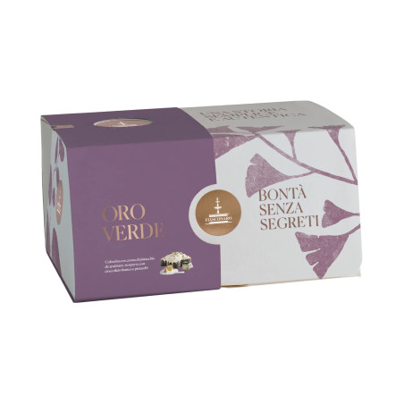 Colomba with pistachio cream to spread coated with white chocolate and pistachio.