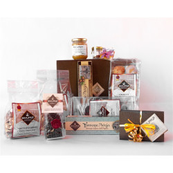Gift Pack Maestoso - Biscuits Amaretti 350g, Little Nougat with Honey Miele 350g, Mixed Chocolates Stuffed 120g, Classico Nougat from L'Aquila 200g, Gianduia and Hazelnuts Nougat 200g, Dark Chocolate Ferratelline 100g, Honey Millefiori 250g, Suffran 0.3g, Almonds with Sugar 350g, Chocolate Biscuits Tozzetti 350g - Dolci Aveja