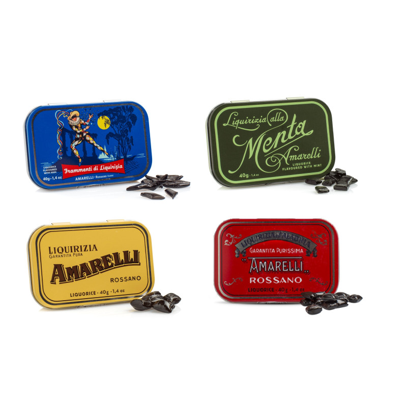 Introducing our delightful 40g tin of assorted licorice treats from Amarelli, featuring a perfect blend of spezzata, spezzatina, rombetti, and favette. This exquisite selection showcases the rich heritage and craftsmanship of Amarelli, renowned for its high-quality licorice. Each piece is meticulously crafted to deliver a unique flavor experience, making it a perfect indulgence for licorice lovers. The compact 40g tin is not only convenient for on-the-go snacking but also makes for an ideal gift for friends and family. Enjoy the robust taste and aromatic essence of traditional Italian licorice, which is both naturally sourced and carefully prepared to ensure maximum freshness. Whether you're treating yourself or sharing with others, this mix is sure to satisfy your cravings and bring a touch of sweetness to your day. Elevate your snacking experience with Amarelli's authentic licorice assortment, and discover why it has been a cherished favorite for generations. Perfect for any occasion, this delightful treat is a must-have for those who appreciate the finer things in life.