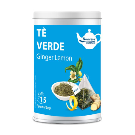 Tè Verde Ginger Lemon, Jar with 15 Pyramidal Filters of 2,25g - Novarese Zuccheri