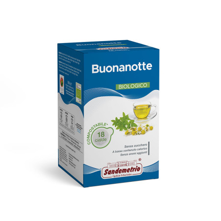 La tisana funzionale Buonanotte Sandemetrio è una Miscela costituita da erbe officinali quali Passiflora, Camomilla, Arancio, Biancospino, Verbena odorosa,Menta piperita, Mora, Lavanda e Valeriana. Se presa regolarmente può essere utile per favorire un sonno tranquillo e riposante