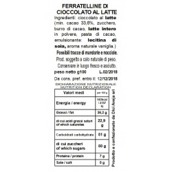 Sfiziosi cioccolatini a forma di “ferratelline” di cioccolato al latte purissimo, tanto gusto in soli 6 gr