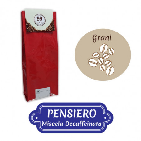 La miscela Pensiero è una Arabica Decaffeinata in maniera naturale che preserva tutti gli aromi ed il gusto. Amerete la miscela Pensiero perché nessuno scoprirà che è un caffè decaffeinato, ma è semplicemente un ottimo caffè! Ideale ad ogni ora del giorno, sarà il "Pensiero" che vi dedicherete ogni qualvolta vorrete regalarvi un momento tutto per voi.