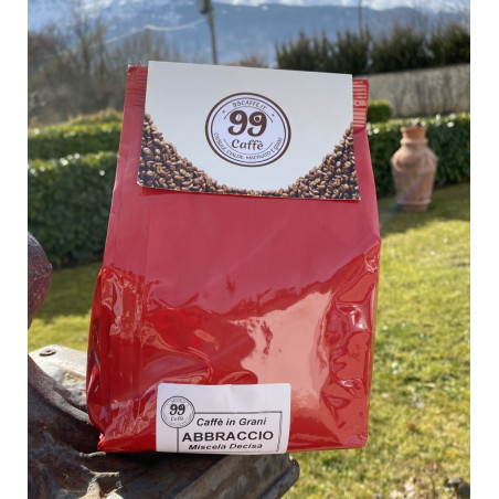 La miscela Abbraccio è forte e decisa come un abbraccio! E' il tipico espresso Bar all'italiana! Caratterizzata da pregiati chicci di Robusta Top Quality che donano corpo e persistenza che contraddistinguono i caffè che sferzano il nostro animo e svegliano il nostro corpo! Una carica di caffeina di cui non potrai fare a meno, propio come un "Abbraccio".