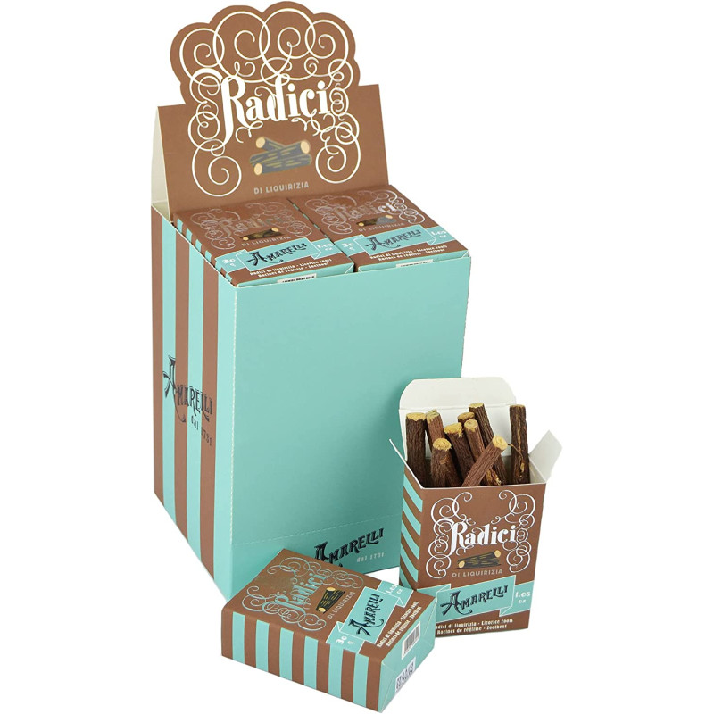 Radici di Liquirizia, bastoncini da 9 cm - Expo 12x30g - Liqurizia Amarelli