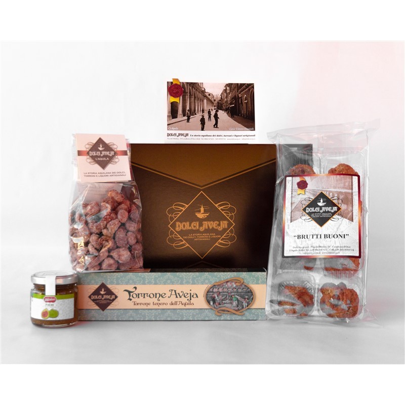 Pacco Splendido - Torrone Classico Aquilano 200g, Nocci Interrati (Mandorle Pralinate) 200g, Brutti Buoni 200g, Composta di Fic