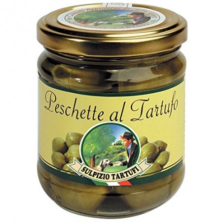 Le Peschette al Tartufo uniscono il gusto particolare delle pesche verdi nane con l’aroma unico del tartufo, creando una fragranza senza uguali: una volta provata siamo sicuri che non ne potrete più fare a meno. Come cucinare la Peschette al Tartufo: far sgocciolare le peschette per qualche ora o asciugarle a mano con un panno asciutto; tagliarle a metà e servire come antipasto (Vedi ricetta: Spiedini di Peschette al Tartufo) accompagnandole con salumi e formaggi, come aperitivo con un Martini fresco, portata intermedia in un pranzo o una cena a base di tartufo oppure come contorno per accompagnare un secondo di carne o pesce.