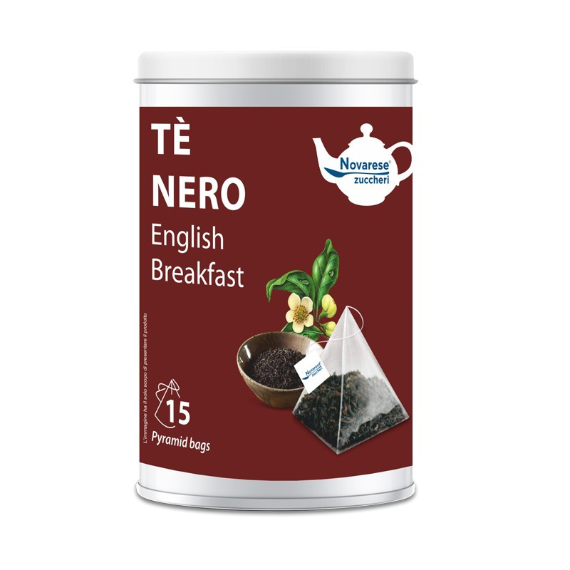 Tè Nero English Breakfast, Barattolo con 15 Filtri Piramidali da 2g - Novarese Zuccheri